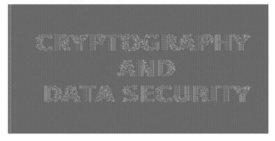 Powyższy obrazek został zaszyfrowany za pomocą algorytmu szyfrującego uważanego powszechnie za bardzo silny, który dodatkowo wykorzystuje długi klucz. Mimo to bez trudu możemy odczytać, co znajdowało się na obrazku przed szyfrowaniem. Ten przykład pokazuje, że sam dobry szyfr lub długi klucz nie wystarczą – równie istotne jest ich właściwe użycie. Konkretniej, zastosowany w tym przypadku algorytm jest deterministyczny, co oznacza, że dla tych samych danych zawsze daje ten sam wynik. (Przeciwieństwem algorytmów deterministycznych są algorytmy losowe). Co więcej, powyższy obrazek przed szyfrowaniem składał się głównie z białego tła. Algorytm szyfrujący podzielił go na mniejsze fragmenty i zaszyfrował każdy z nich osobno. Ponieważ wiele fragmentów zawierało wyłącznie białe tło, a algorytm jest deterministyczny, to każdy taki fragment został zaszyfrowany w ten sam sposób. Z drugiej strony fragmenty zawierające choćby niewielką część liter były szyfrowane inaczej. W rezultacie po zaszyfrowaniu można zauważyć różnice między obszarami tła a literami, co pozwala na częściowe odtworzenie pierwotnego obrazu.