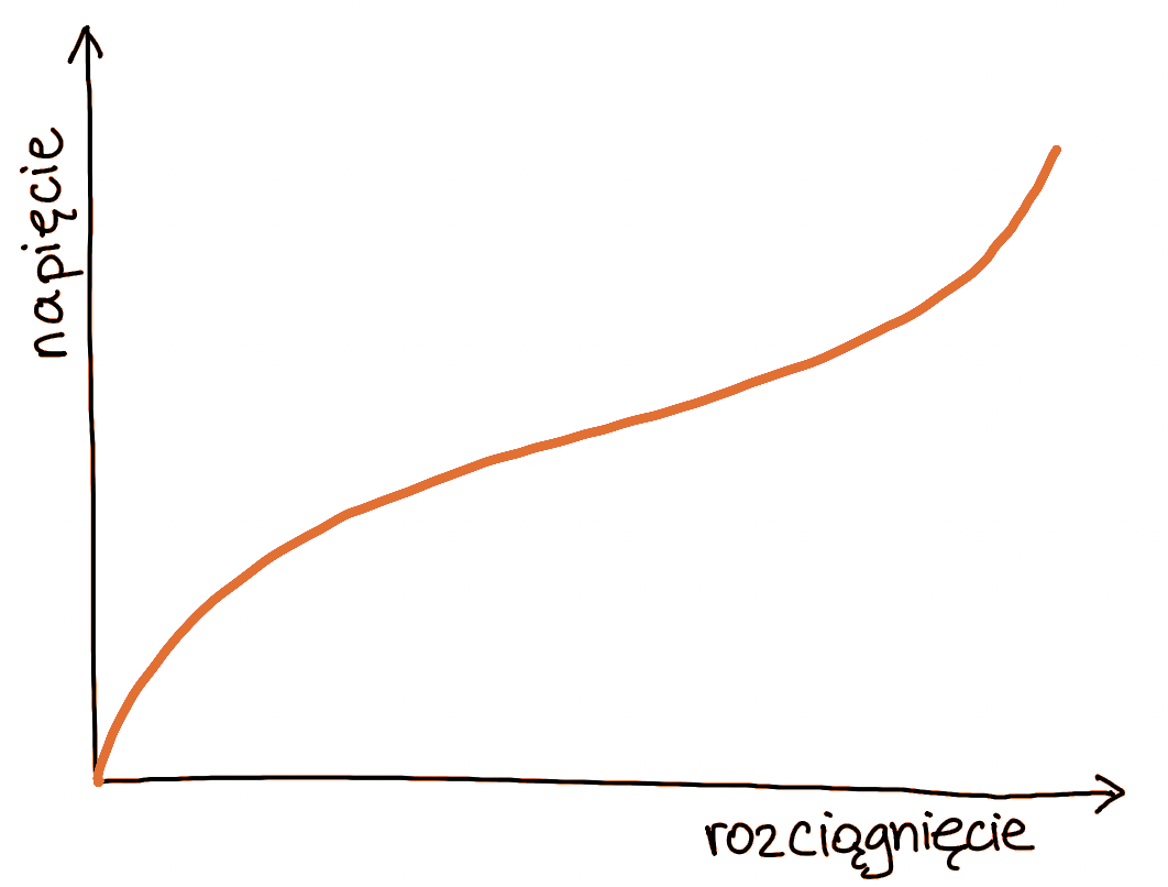 Wykres zależności napięcia od rozciągnięcia dla polimeru