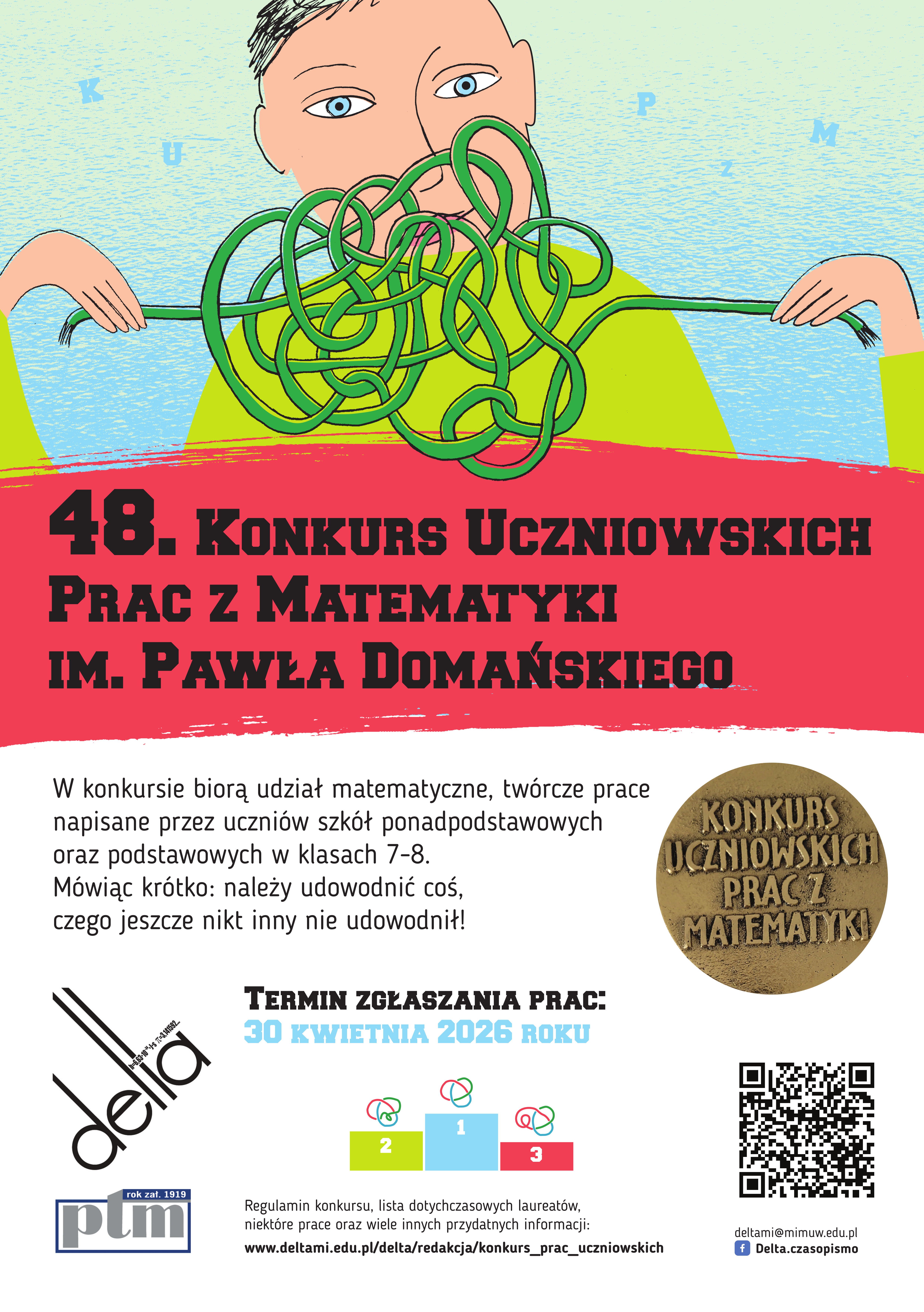 Konkurs Uczniowskich Prac z Matematyki organizowany jest przez Polskie Towarzystwo Matematyczne, Wydział Matematyki, Informatyki i Mechaniki Uniwersytetu Warszawskiego i redakcję Delty. W konkursie biorą udział prace zawierające nowe wyniki lub nowe twórcze ujęcie tematu.
