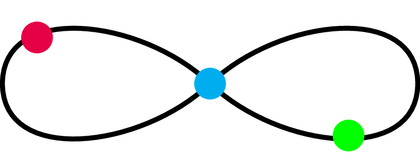 Elegancja i prostota teorii opisującej ruch planety wokół Słońca mogłaby zachęcić nas do tego, byśmy zaczęli szukać podobnych rezultatów opisujących ruch trzech lub więcej ciał niebieskich. Niestety tak uniwersalnych wyników po prostu nie ma. Zagadnienie trzech ciał zazwyczaj prowadzi do chaotycznych trajektorii. W niektórych wyjątkowych przypadkach daje się jednak znaleźć zaskakujące szczególne rozwiązania. Okazuje się na przykład, że przy odpowiednim wyborze warunków początkowych trzy ciała, oddziałujące na siebie tylko grawitacyjnie, mogą podążać za sobą, kreśląc trajektorię ,,ósemki” (rys. 9). Numerycznie zaobserwował to Chris Moore (1993 r.), a w 2000 roku udowodnili to formalnie Richard Montgomery i Alain Chenciner. Ta w gruncie rzeczy ciekawostka zainspirowała niektórych do poszukiwania rozmaitych ,,choreografii”, w których cząstki oddziałujące grawitacyjnie pląsają po specyficznych trajektoriach.