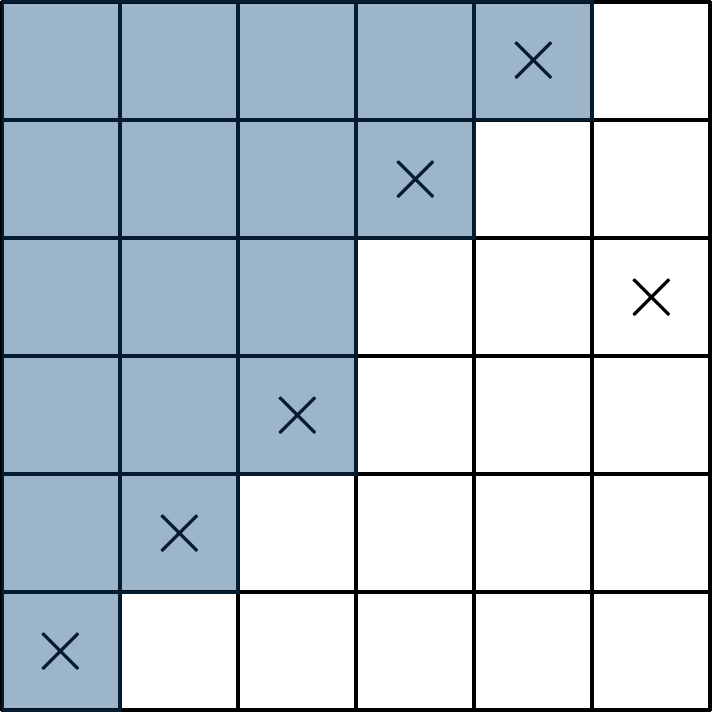 Wieże znajdują się na polach \((i,i)\) dla \(i\leq n,\) \((i,i+1)\) dla \(n<i\leq 2n-1\) oraz na polu \((2n,n+1).\)