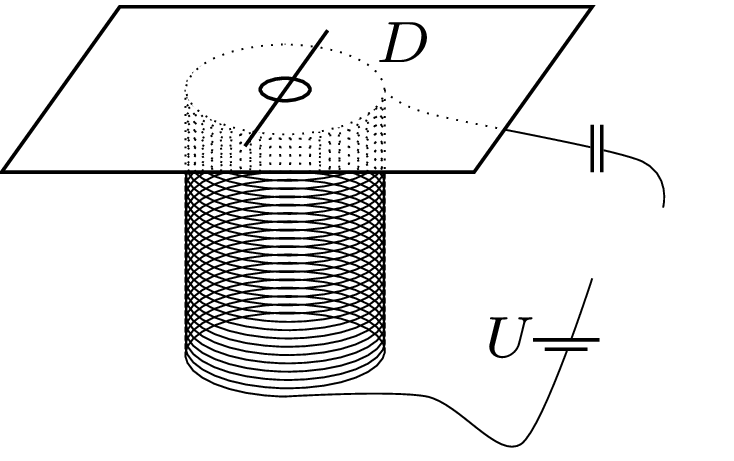 799. Siła Lorentza nadaje elektronowi przyspieszenie dośrodkowe. Zgodnie z drugą zasadą dynamiki \[{mv^{2}\over R} = evB,\] gdzie \(m\) jest masą, a \(e\) wartością bezwzględną ładunku elektronu. Zmiana pola magnetycznego powoduje pojawienie się wirowego pola elektrycznego \(E\). Zgodnie z prawem Maxwella natężenie \(E\) tego pola dla krótkiego czasu \(\Delta t\) spełnia równanie \[% 2\pi RE = {\Delta \Phi_{B}\over\Delta t} = {\pi R^{2}\Delta B\over\Delta t},\] stąd \[E = {R\Delta B\over(2\Delta t)}.\] Siła elektryczna przyspiesza elektron, zmienia się jego prędkość i promień orbity, ale zależność (1) nadal jest spełniona.